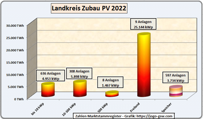 2022 wurden im Landkreis 961 Anlagen mit 37,46 MW neu zugebaut. Der Zubau nimmt Fahrt auf.