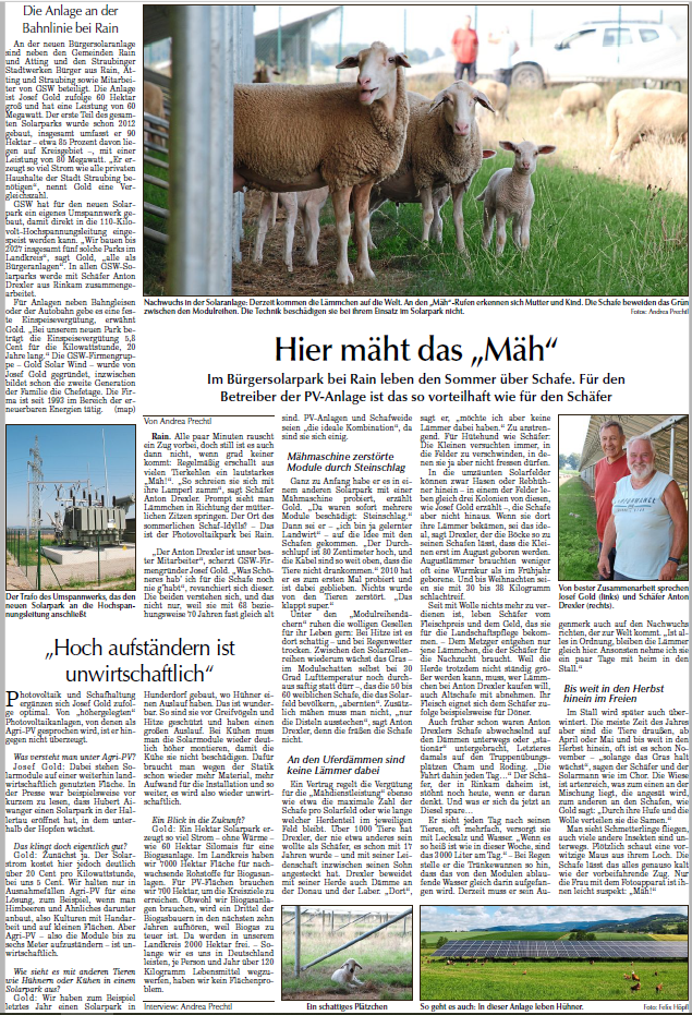Schafe im Solarpark Verfasst vongswjogo27. August 2023Veröffentlicht inZeitungsbeiträge Straubinger Tagblatt vom 26.08.2023 Ähnliche Beiträge