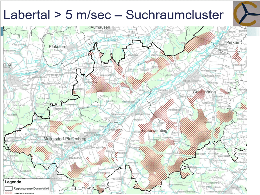 In der Grafik sieht man den Suchraumcluster für Windenergie im Labertal